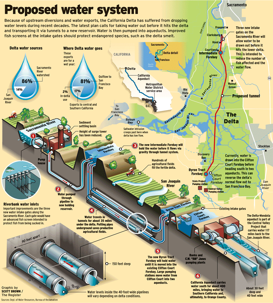 Much closer to home here California is currently conceiving of a 20 billion dollar “wonder” of the Delta Bypass Tunnels that would cost over 25 billion dollars to move divert water from entering the Delta and better quality water to Southern California.