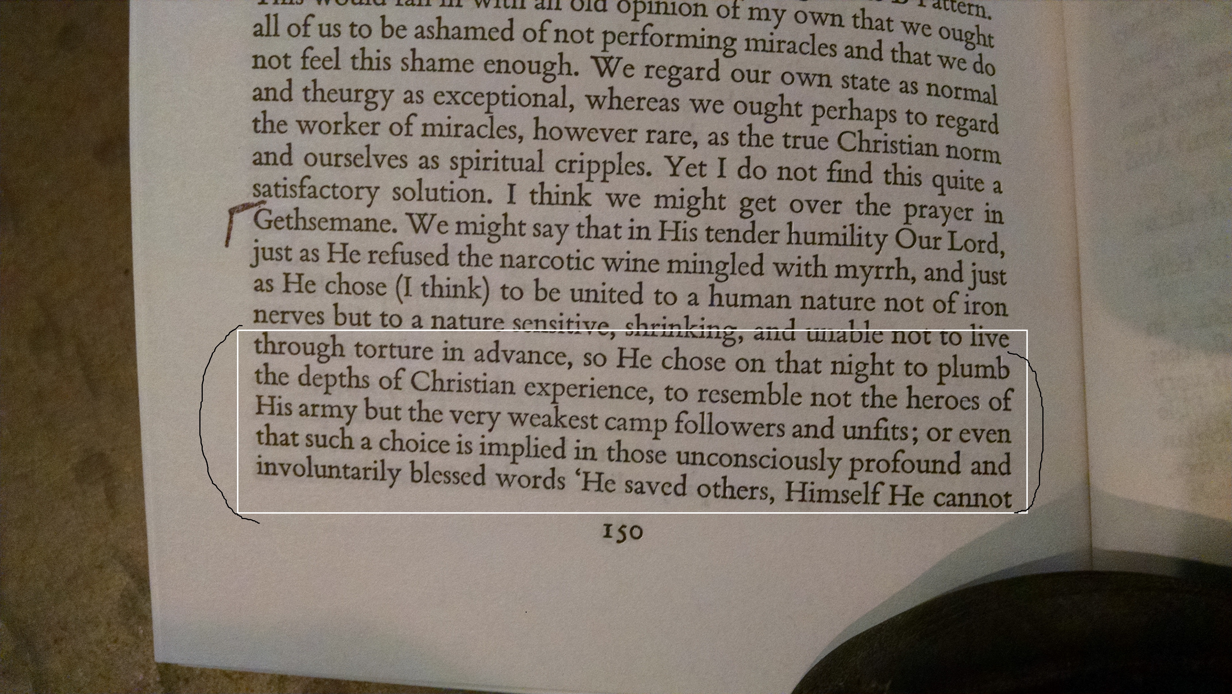 “he chose, on that night to plumb the depths of Christian experience, to resemble not the heroes of His army but the very weakest camp followers and unfits;”